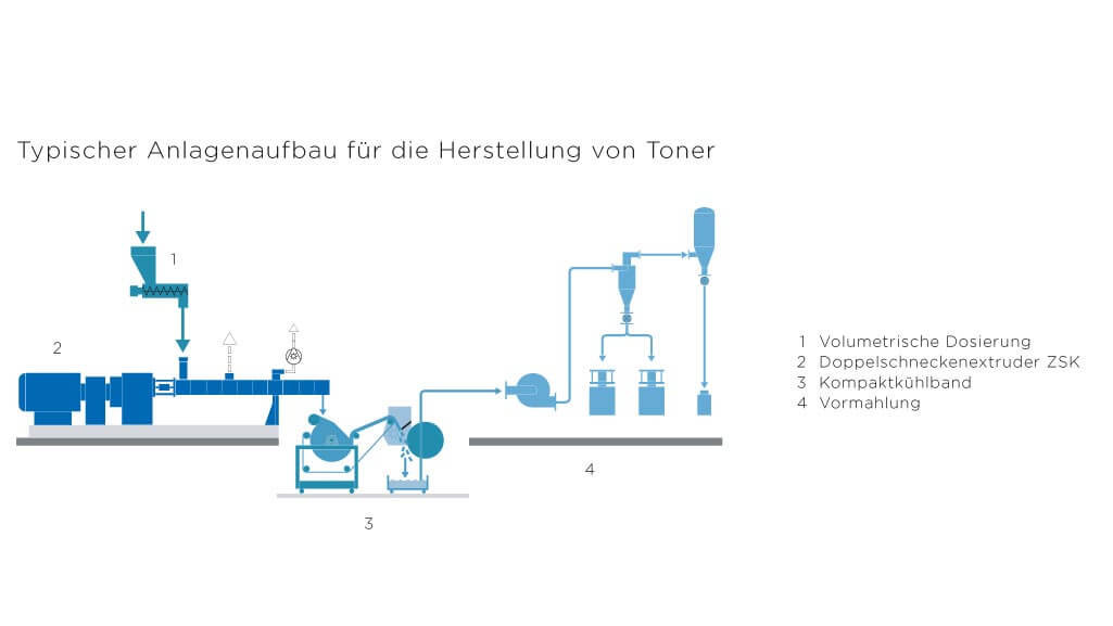 Coperion ist seit vielen Jahren Experte für die Entwicklung und Realisierung von Dosier- und Extrusionssystemen für hochwertigen Toner. Tonerrezepturen bestehen aus Harzen, Pigmenten und Additiven, die äußerst schonend behandelt und gleichzeitig gründlich gemischt werden müssen.
