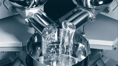 Innerhalb von ca. 30 Sekunden entsteht eine homogene, stark entgaste, bis zu 350°C heiße Schmelze, in die die Energie sehr effizient eingebracht wurde.