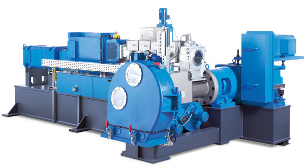 Eine Besonderheit ist, dass IKO die Anlage ohne Kaltmischer betreibt. Beim Aufbereiten von Weich-PVC wird dem Extruder häufig ein Kaltmischer vorgelagert, um die vorgeheizte Vormischung vor dem Plastifizieren wieder herunterzukühlen. Mit der Kombiplast-Anlage kann IKO die heiße Vormischung direkt in den Extruder dosieren und dadurch sehr energieeffizient und somit kostengünstig produzieren.