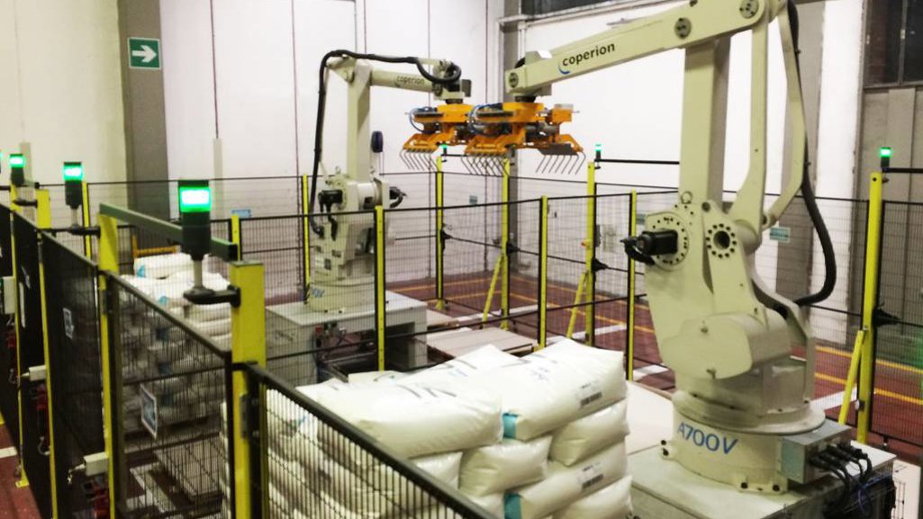 SABIC Italien ist Marktführer für Kunststoffcompounds in Kleinmengen, die in hohem Maße kundenspezifische Eigenschaften aufweisen und spezialisierte Prozesstechnologie erfordern. Vorrangige Ziele für die neuen Verpackungslinien waren neben einer extremen Flexibilität und schnellen Reinigung auch eine kontinuierliche Rückverfolgung über Barcodes, die mit den verschiedenen Rezepturen verknüpft sind. Die Herausforderung lag darin, sechs vollautomatische flexible Roboterlinien für Ventilsäcke zu installieren und gleichzeitig die oben genannten Ziele umzusetzen. Im Rahmen einer Prototypen-Konzeptanlage hat Coperion die jahrelange Erfahrung des Unternehmens in diesem Bereich in den gemeinsamen Entwicklungsprozess mit SABIC eingebracht und in der ersten Phase einen Versuchsprototypen gebaut, bevor die Installation und Inbetriebnahme aller sechs Linien erfolgte.