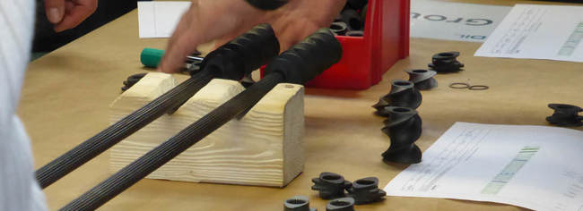 Neben weiteren Fachvorträgen wurde den Teilnehmern in interaktiven Praxisteilen im Coperion-Technikum an zwei ZSK-Extrudern (ZSK 27 Mv PLUS mit 27 mm Schneckendurchmesser und ZSK 43 Mv PLUS mit 43 mm Schneckendurchmesser) Versuche vorgeführt, mit denen die im theoretischen Teil gelernten Inhalte überprüft werden konnten.