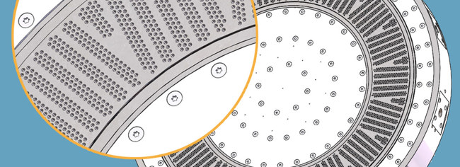 Für ihre groß dimensionierte Lochplatte setzt Coperion erstmals einen neuen, hoch abrieb- und zugleich korrosionsfesten Werkstoff ein, der die Standzeiten verdoppelt.