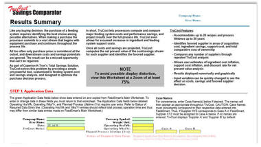 Improved feeding accuracy has long been employed to reduce costs by avoiding the need to overfeed critical or expensive ingredients. When following a traditional “target-value” recipe where ingredient setpoints are fixed, as long as established quality limits are not violated, no specific material savings can be realized, regardless of the feeding system employed. In addition, the ongoing variability of the final product being produced when using a less accurate feeding system will be higher. However, by using the FeedSmart Recipe Optimizer to convert to a tolerance-based recipe where ingredient setpoints are adjusted to their optimum level without violating established product quality standards, and by employing a more accurate feeding system, processors can realize maximum savings. FeedSmart’s tolerance-based optimization changes the logic, and each improvement in feeding accuracy reduces recipe cost by a specific, calculable and achievable amount. It turns any improvement in feeding accuracy, no matter how small, into a lower cost recipe.