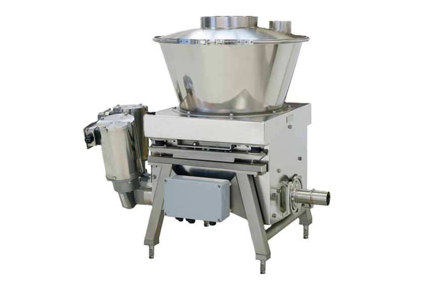The MechaTron® 3-A screw feeder was designed specifically for use in food and dairy industry process applications where equipment must meet 3-A sanitary levels or equivalent. All welds, radii, seals, surface finishes, gaskets, and contact and non-contact materials meet 3-A standards. Available product features include AC and DC drive packages, an FDA / USDA accepted “Coni-Flex™” flexible conical feed-hopper, and the ability to disassemble, clean, reconfigure, and service from the non-process side of the feeder.