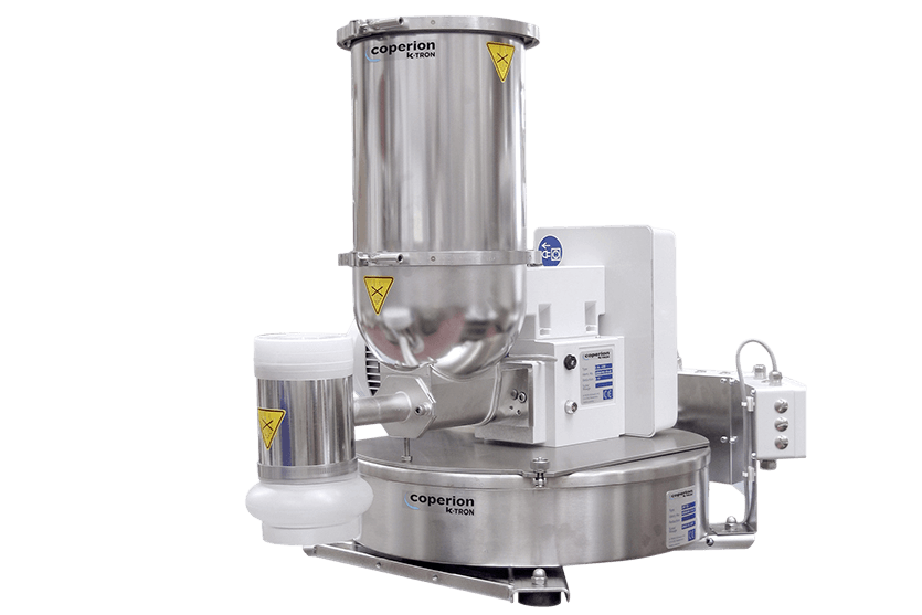S60 feeders feature the twin belt-driven K2 gearbox, which offers advantages in challenging applications (hazardous locations or low feed rates with dense bulk materials). The K2 T35 and S60 feeders are available in a Quick Change execution, allowing for easy exchange of the feeder bowl and screws when recipes change frequently.