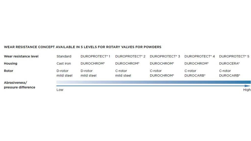 - Our DUROPROTECT levels for rotary valves guarantee maximum service life and availability