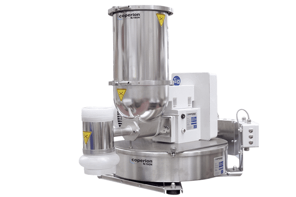 容積式スクリューフィーダは最も一般的で経済的なフィーダです。コペリオンK-トロンは、幅広い材料供給量に対応するシングル及びツインスクリューの容積式、重量式フィーダで材料搬送の問題を解決します。これらは迅速な材料変更のために最適化されており、異なる材料特性に合わせて構成することも可能です。また、洗浄が容易であり、食品および医薬衛生上の要件を満たします。